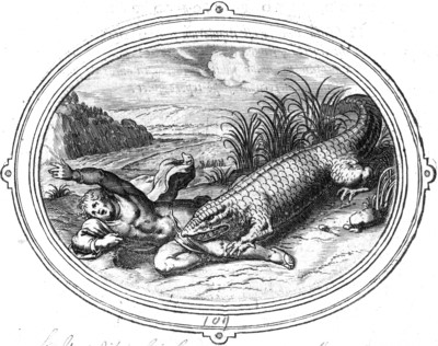獣:英語の原文はserpent(蛇・竜)となっているが、この時代にはワニはサイなどと同様にまだ珍獣で、この種の動物を総称する語がserpentであった。